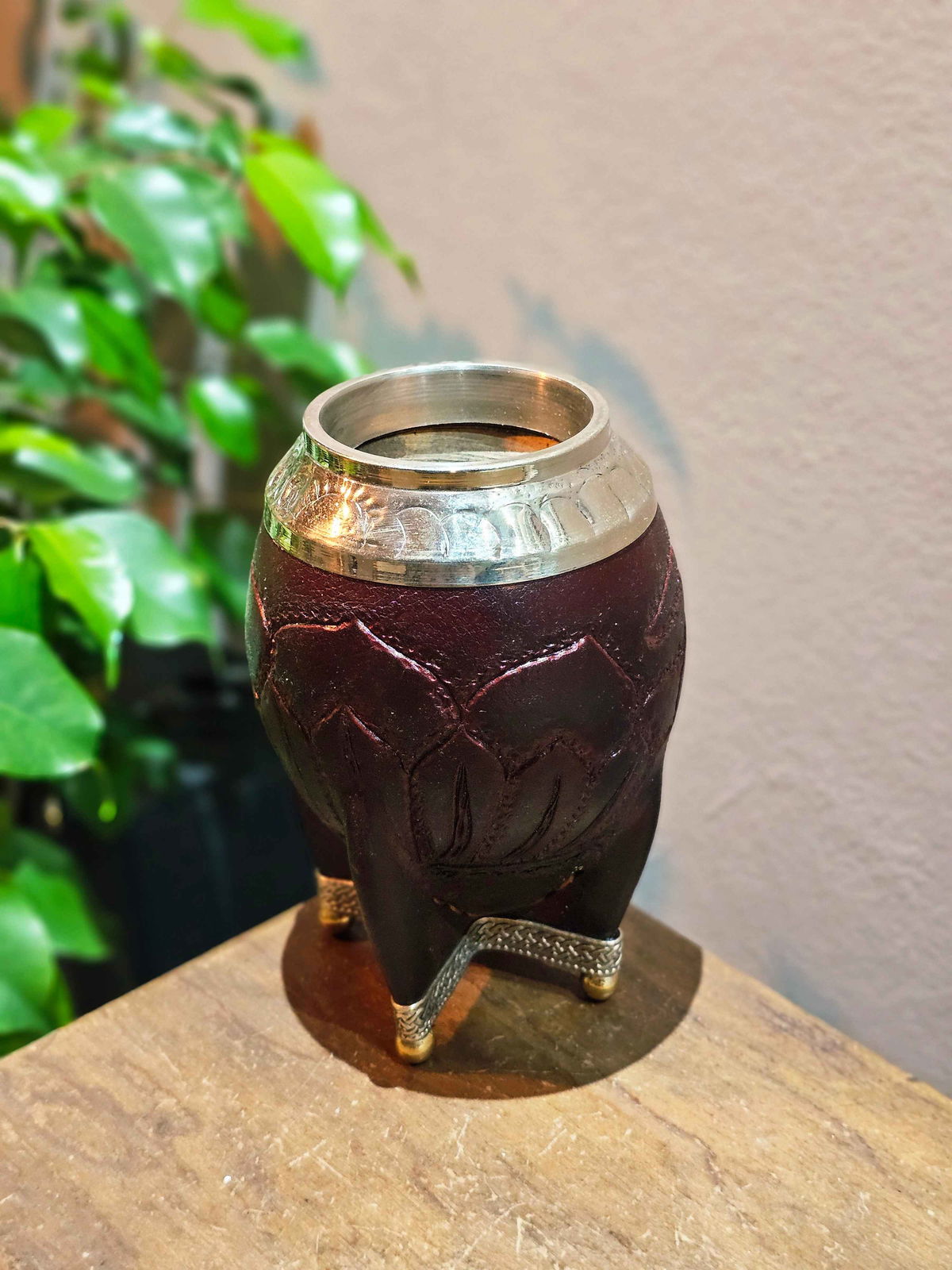 Trabajado artesanalmente en cuero y virola.