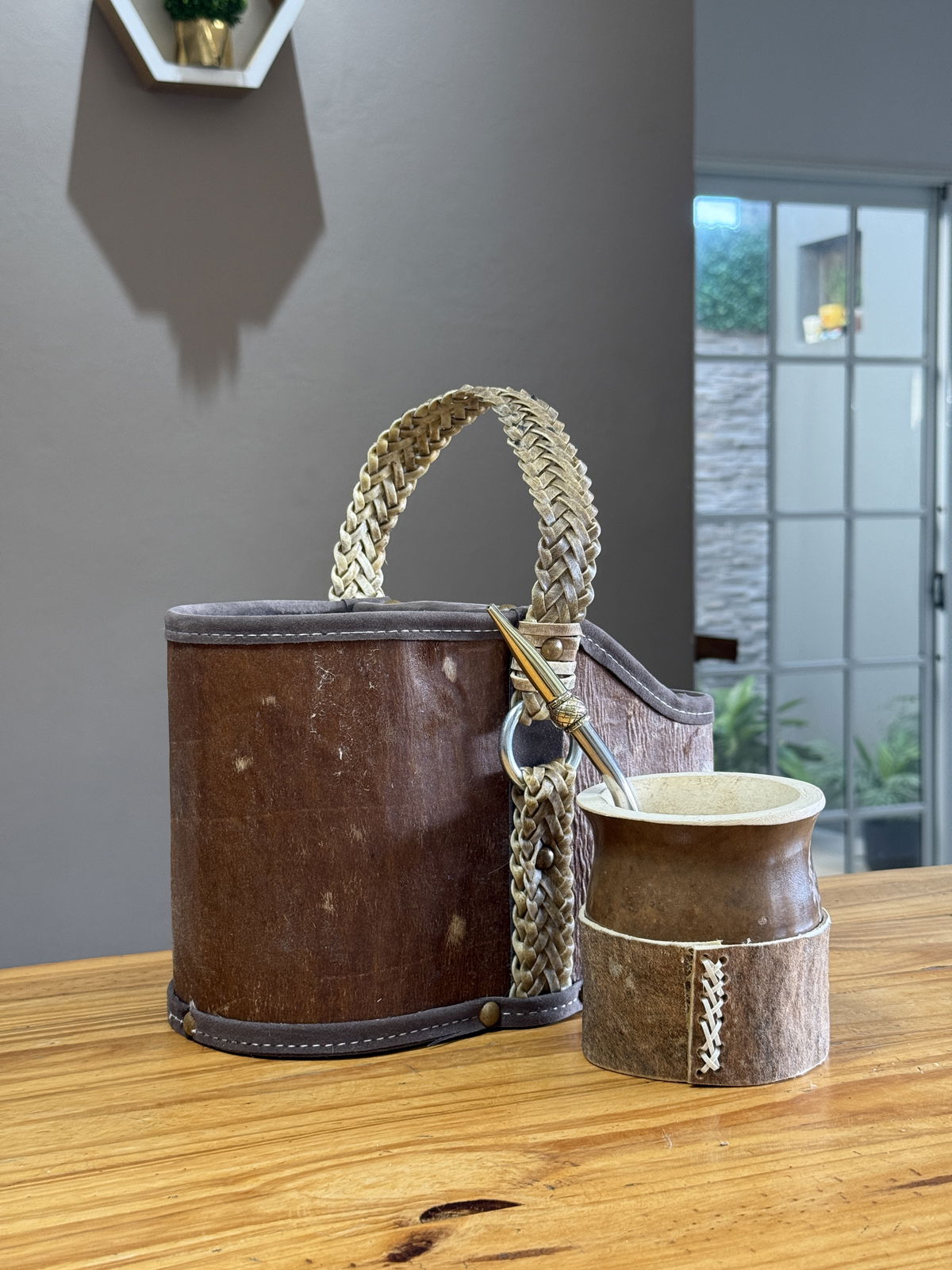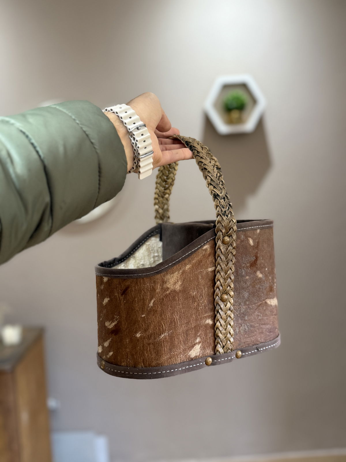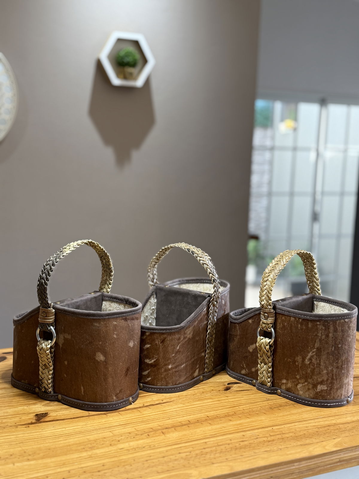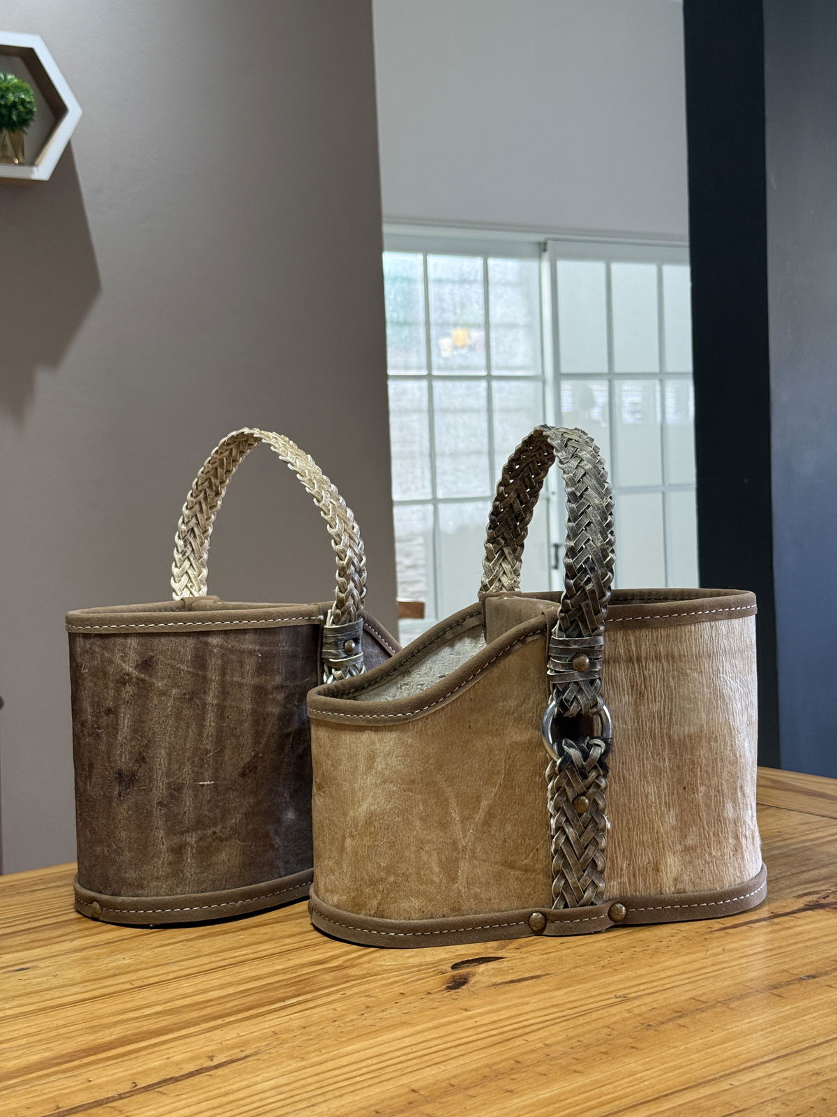 Canastas de cuero crudo de la más alta calidad.Divisor de madera cubierto.