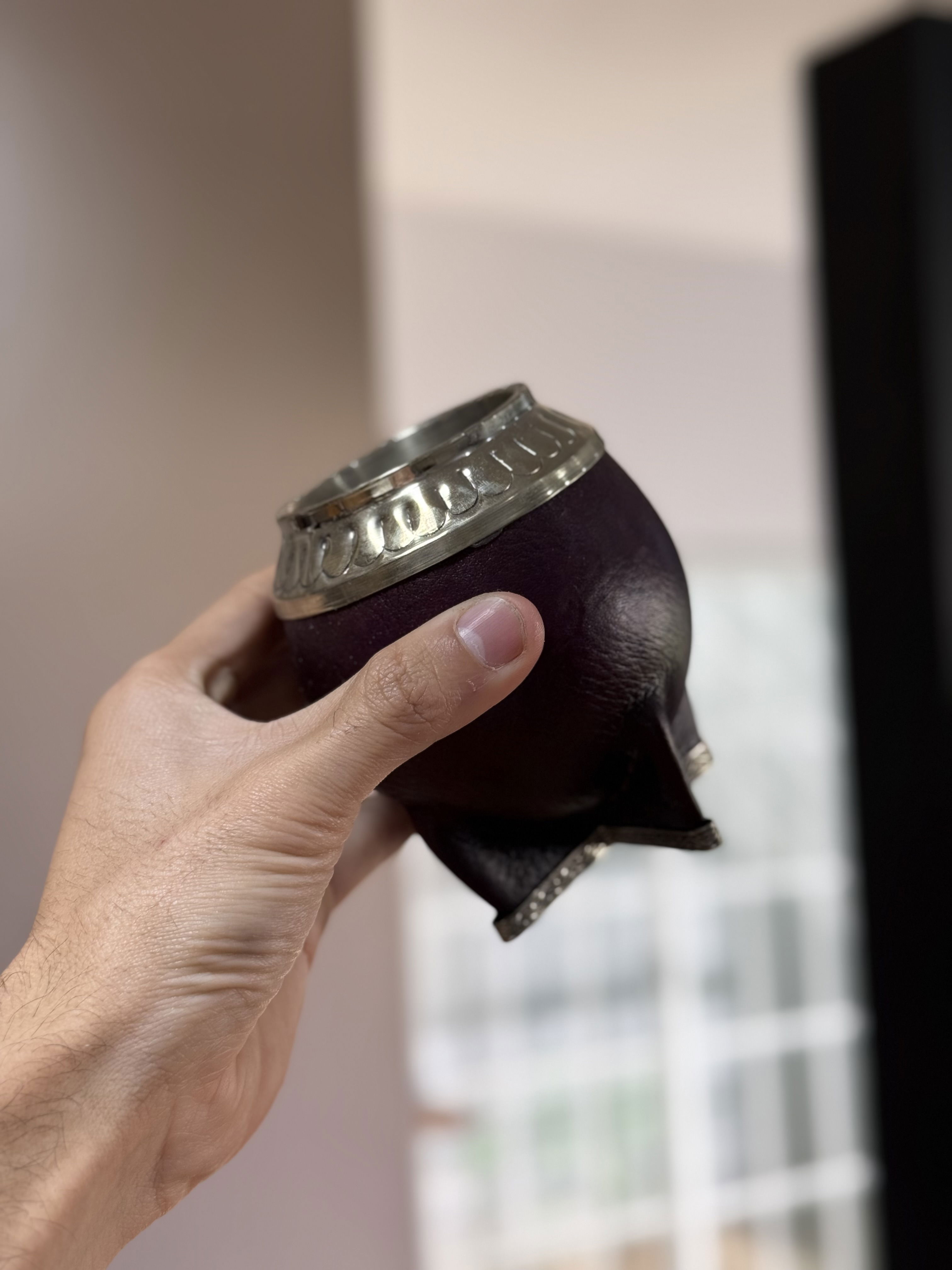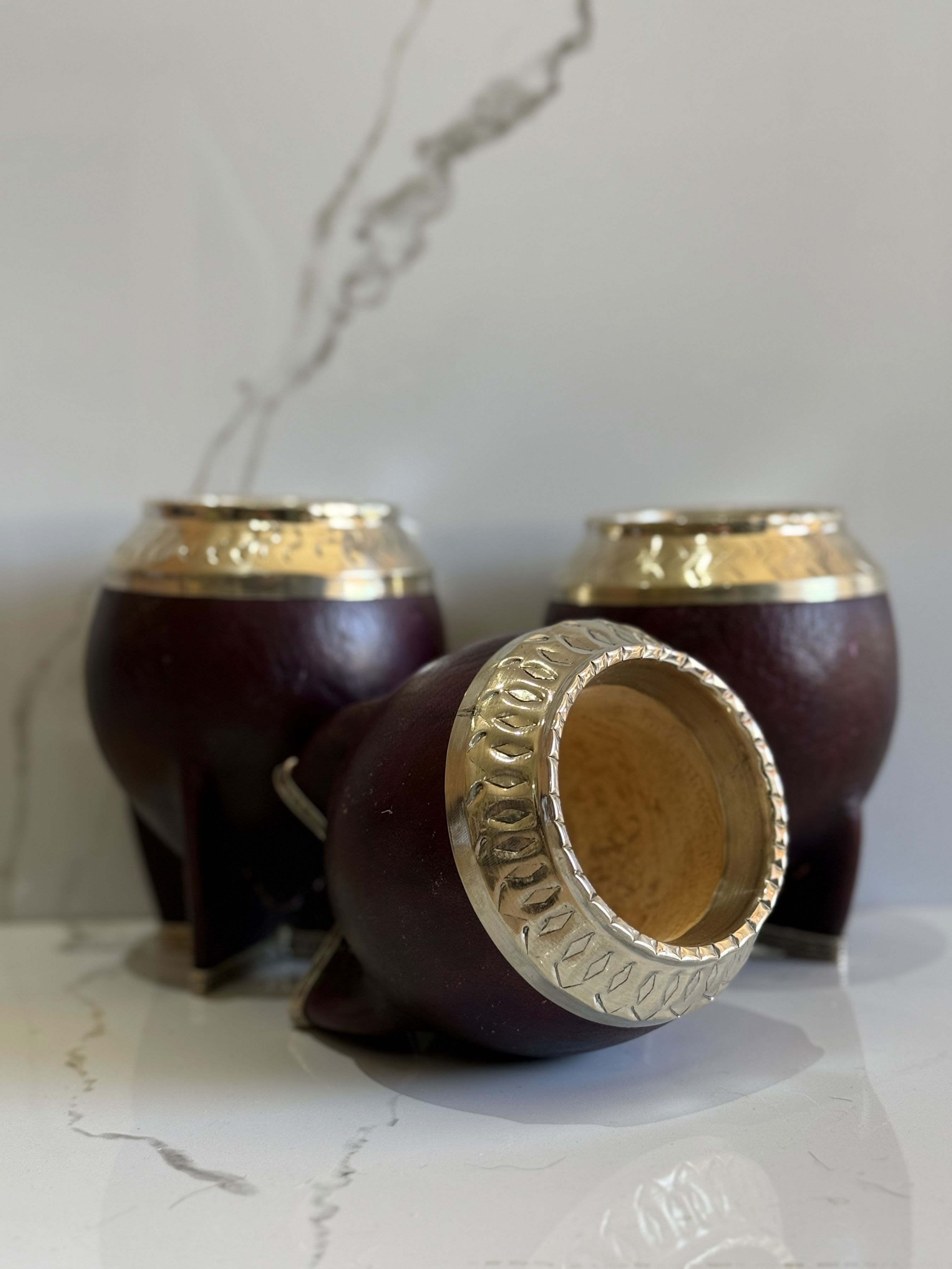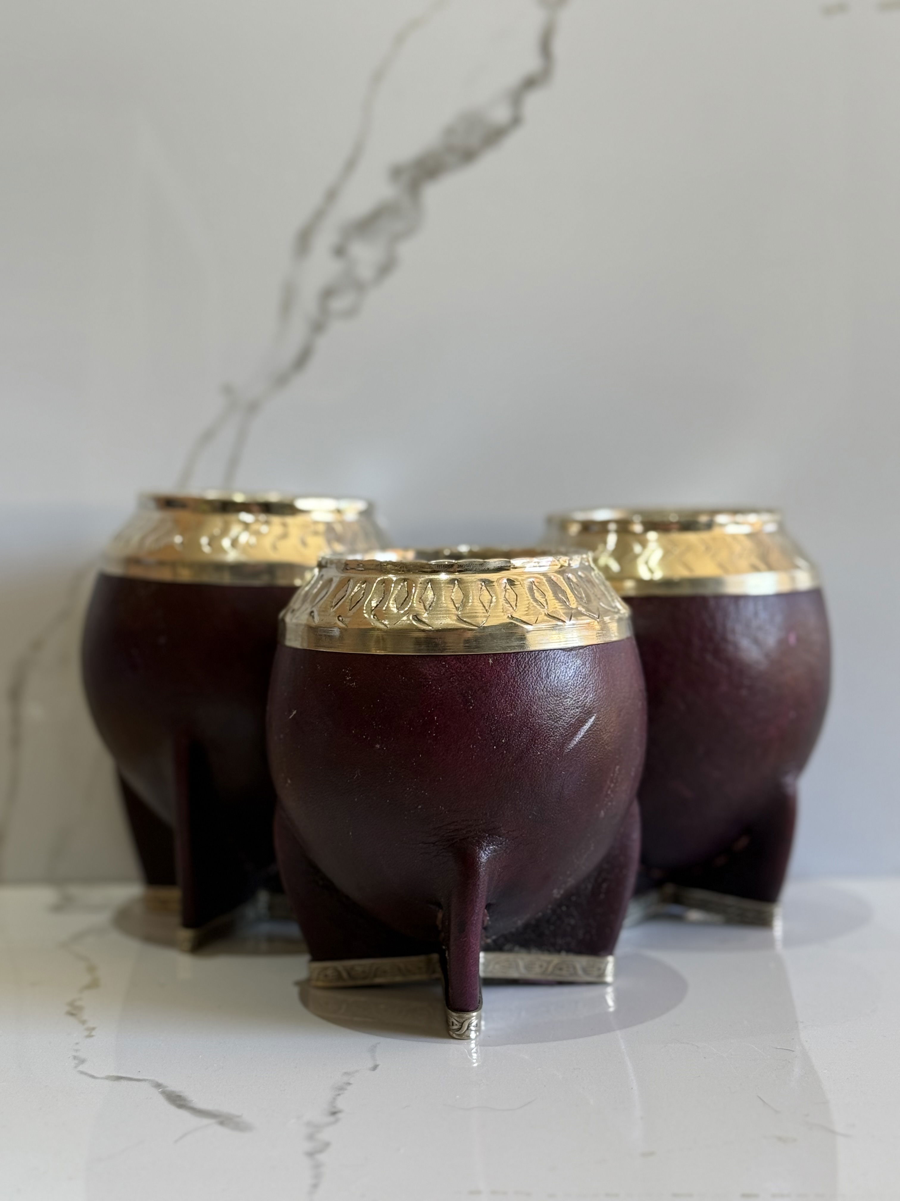 Forrado en cuero Borravino para brindar mayor durabilidad y una estética tradicional y sobria. Su base cuenta con patas cortas integradas que aseguran estabilidad sobre cualquier superficie.