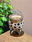 Su cuerpo está revestido en cuero con pelo estampado animal print, suave al tacto y con un acabado natural que lo hace único. La virola y base de alpaca cincelada a mano destacan por su brillo y detalles grabados, mientras que las patitas con bolitas de bronce aportan estabilidad y un toque de lujo inconfundible.